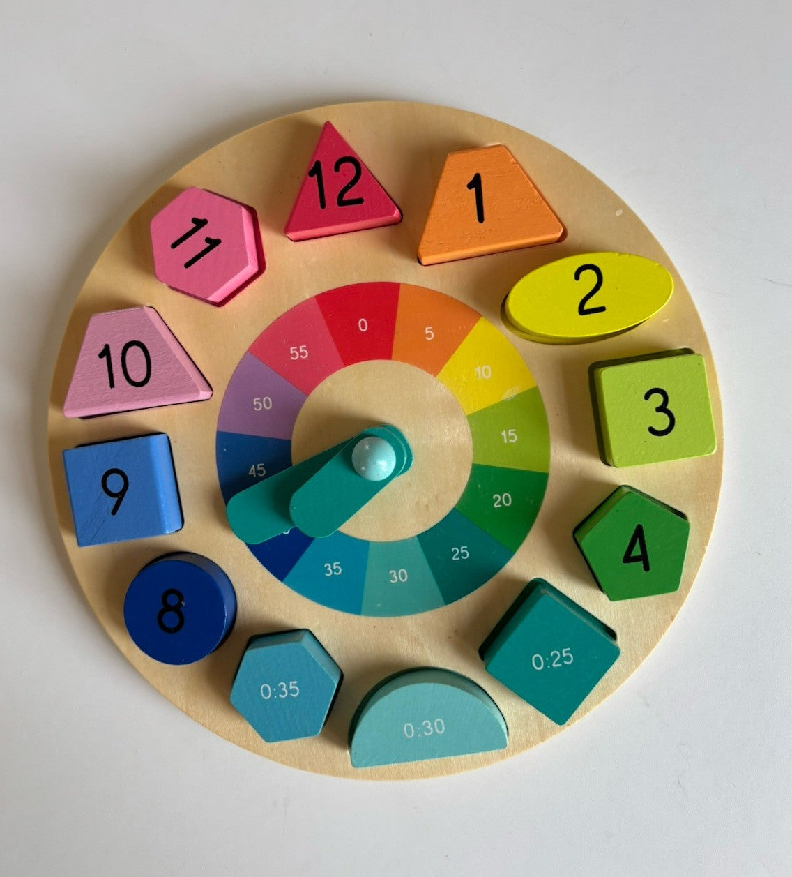 Unbranded kids wooden colourful clock puzzle learning the time, VGUC