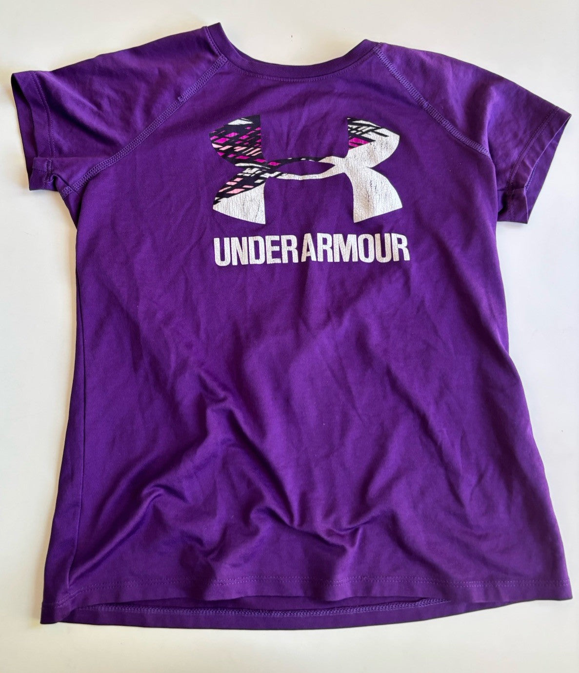 Under Armour kids size YMD (10-12) purple logo heatgear t-shirt top, GUC