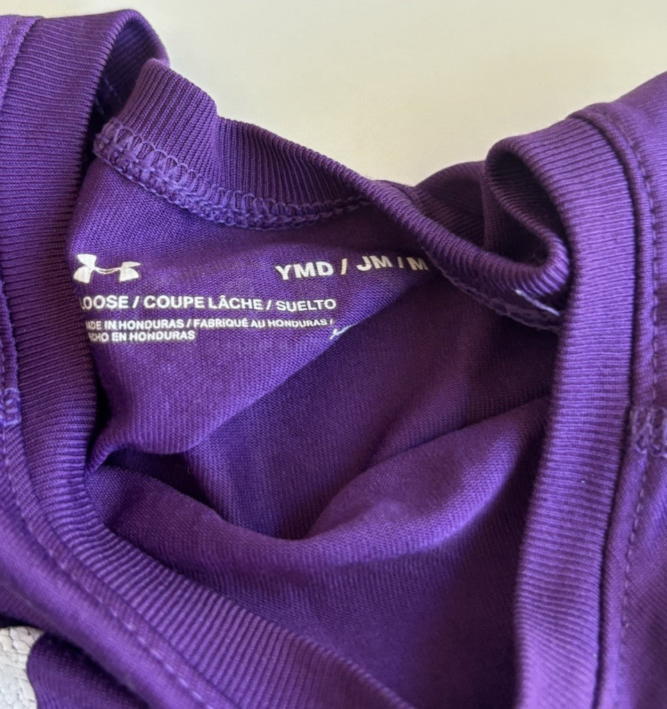 Under Armour kids size YMD (10-12) purple logo heatgear t-shirt top, G