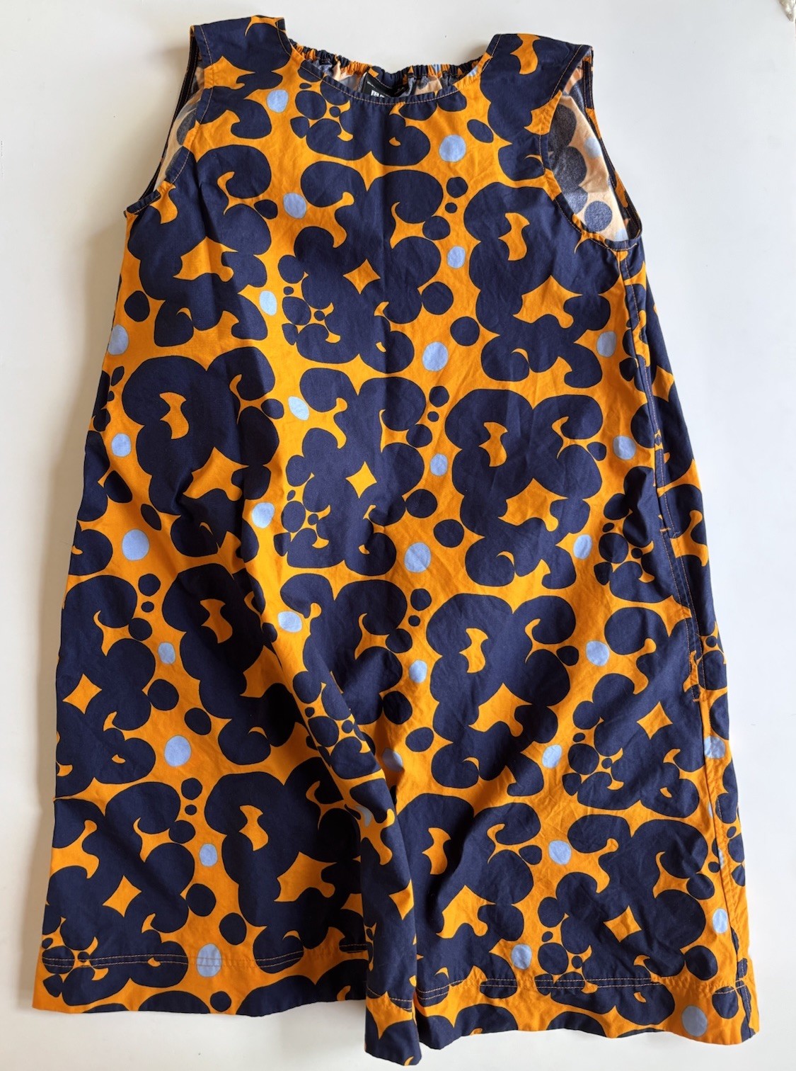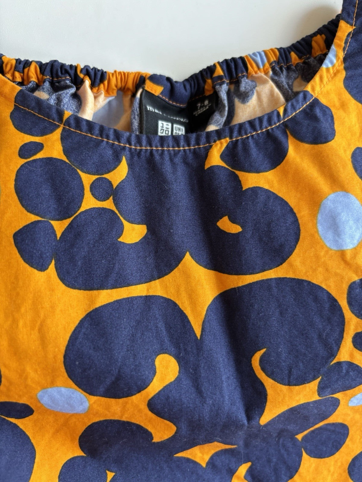 Uniqlo x Marimekko kids girls size 7-8 years orange blue patterned dre