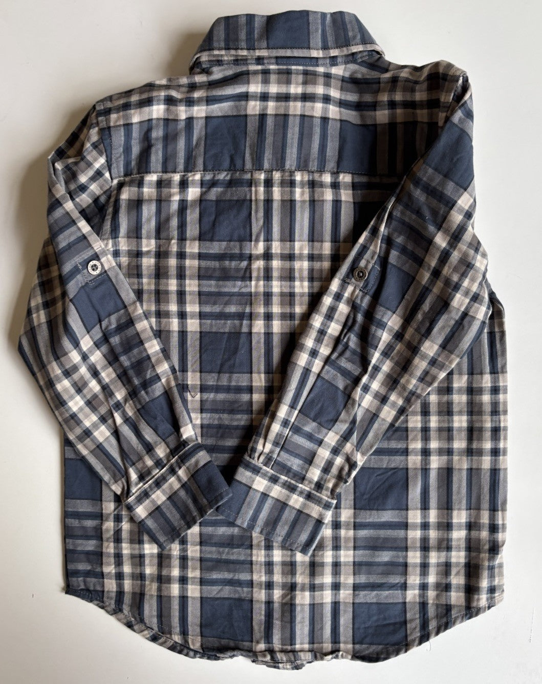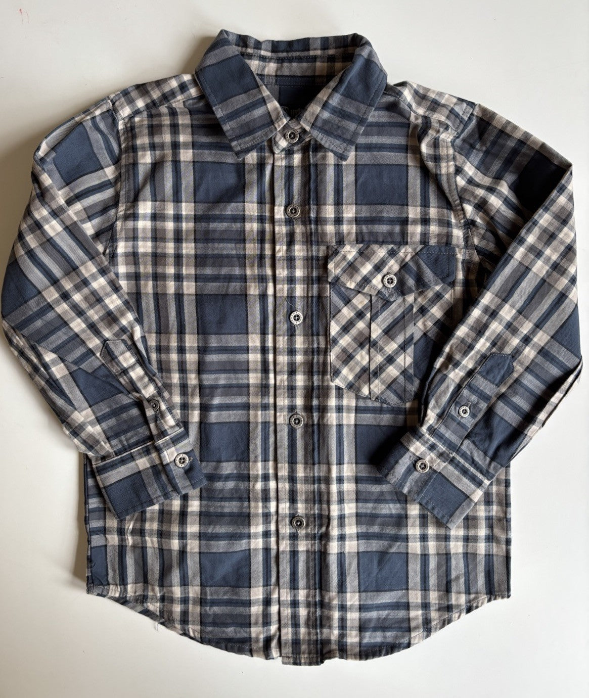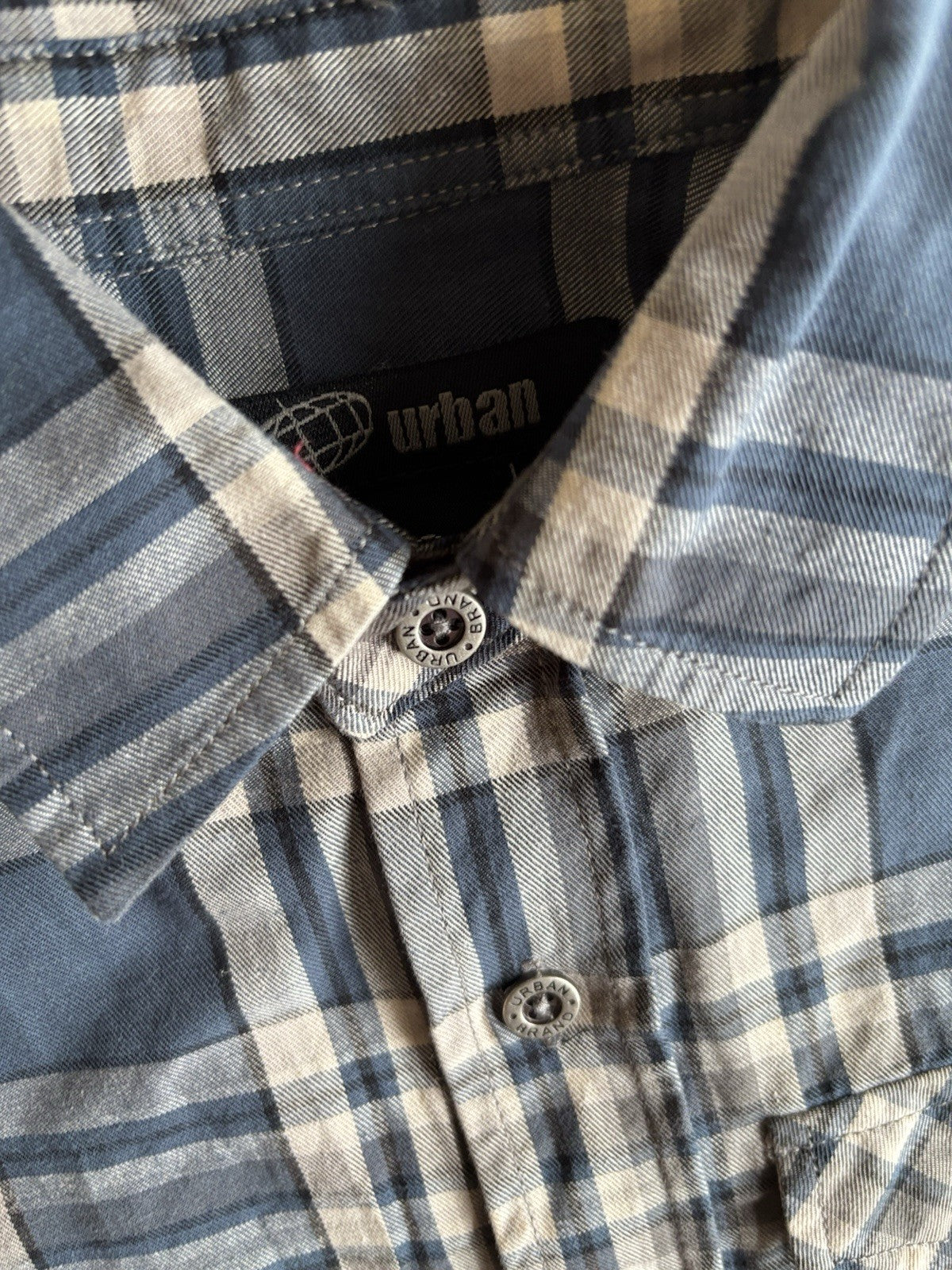 Urban kids boys size 5 grey blue check button up shirt, VGUC