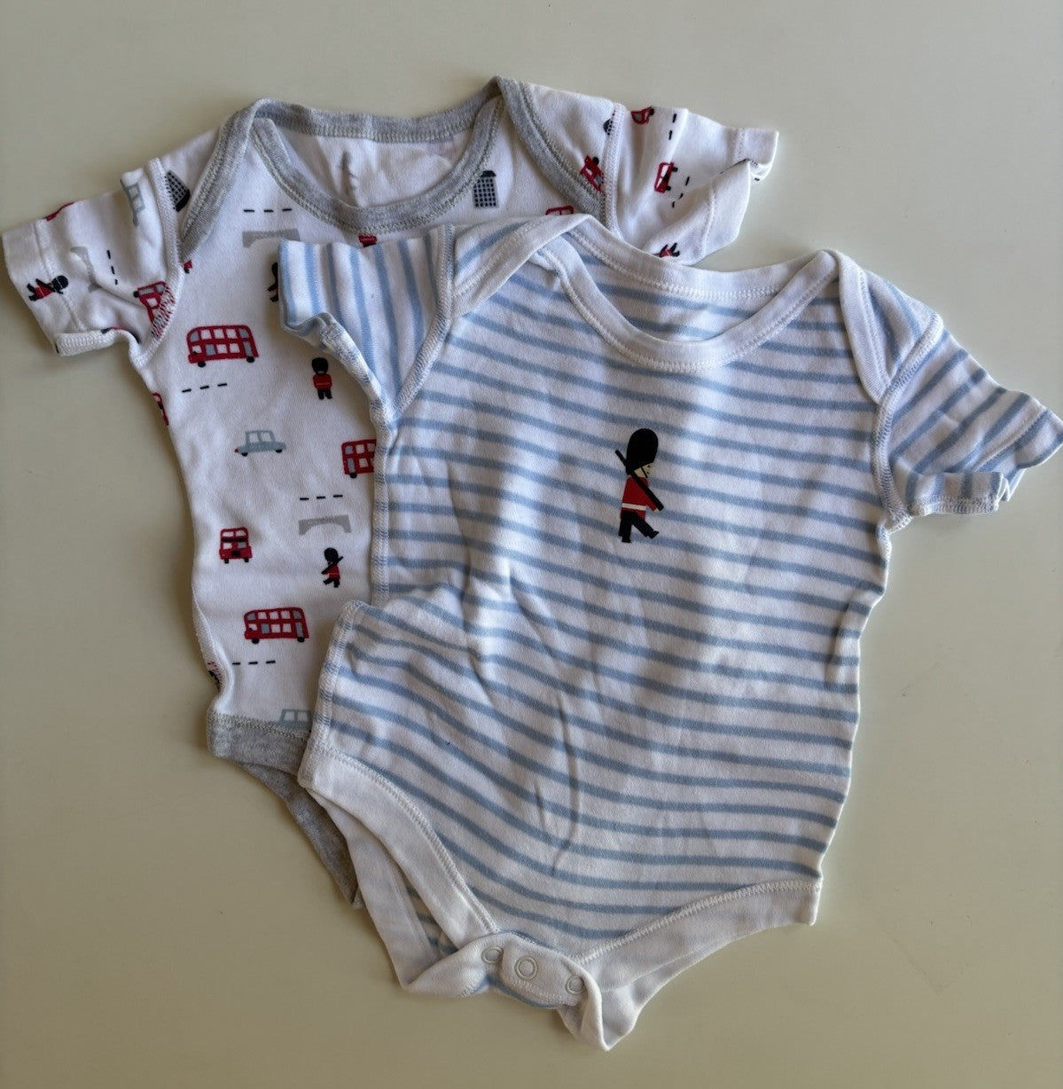 Waitrose baby size 3-6 months x2 bodysuit tops blue white London, VGUC