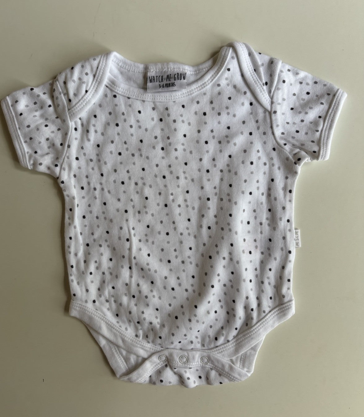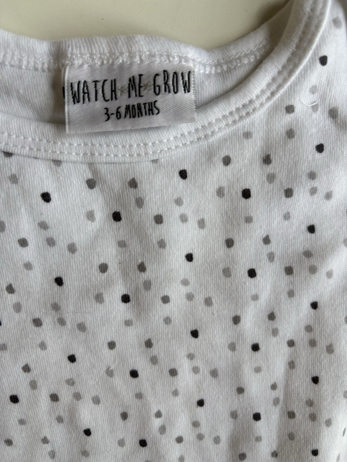 Watch Me Grow baby size 3-6 months white grey spot bodysuit, VGUC