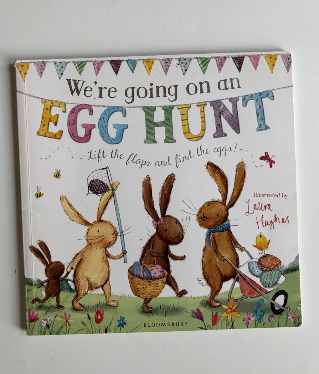 We're Going On an Egg Hunt Laura Hughes paperback lift the flap book, VGUC