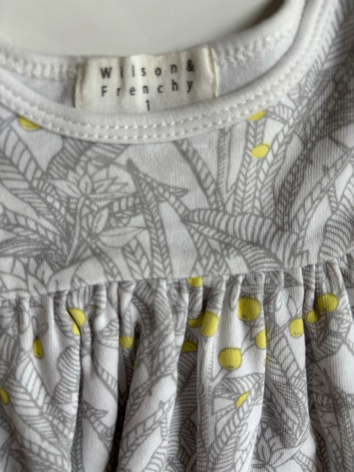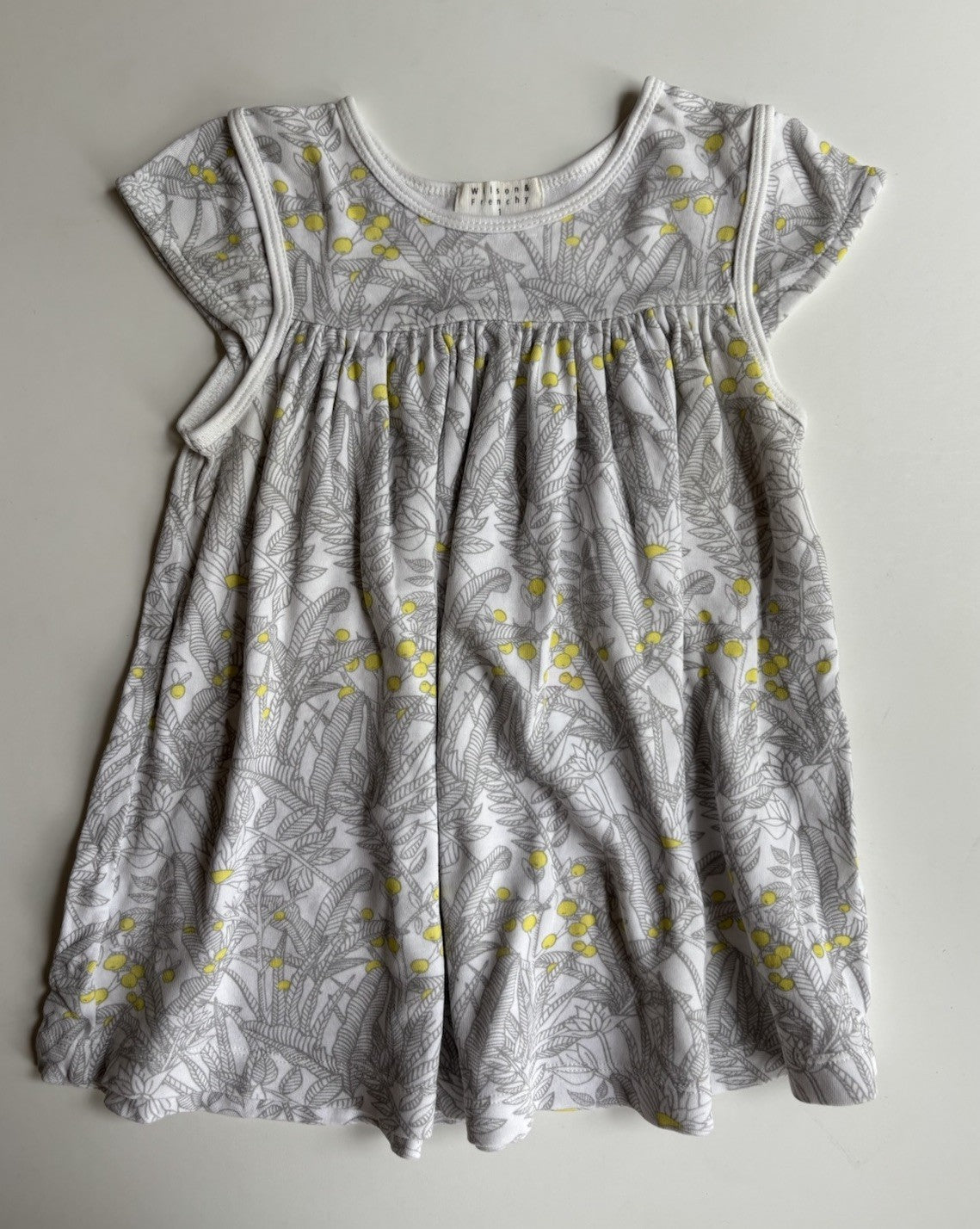 Wilson & Frenchy baby girl size 12-18 months grey yellow floral dress, VGUC