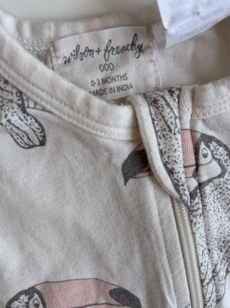 Wilson & Frenchy baby size 0-3 months white toucan one-piece short sleeve, VGUC