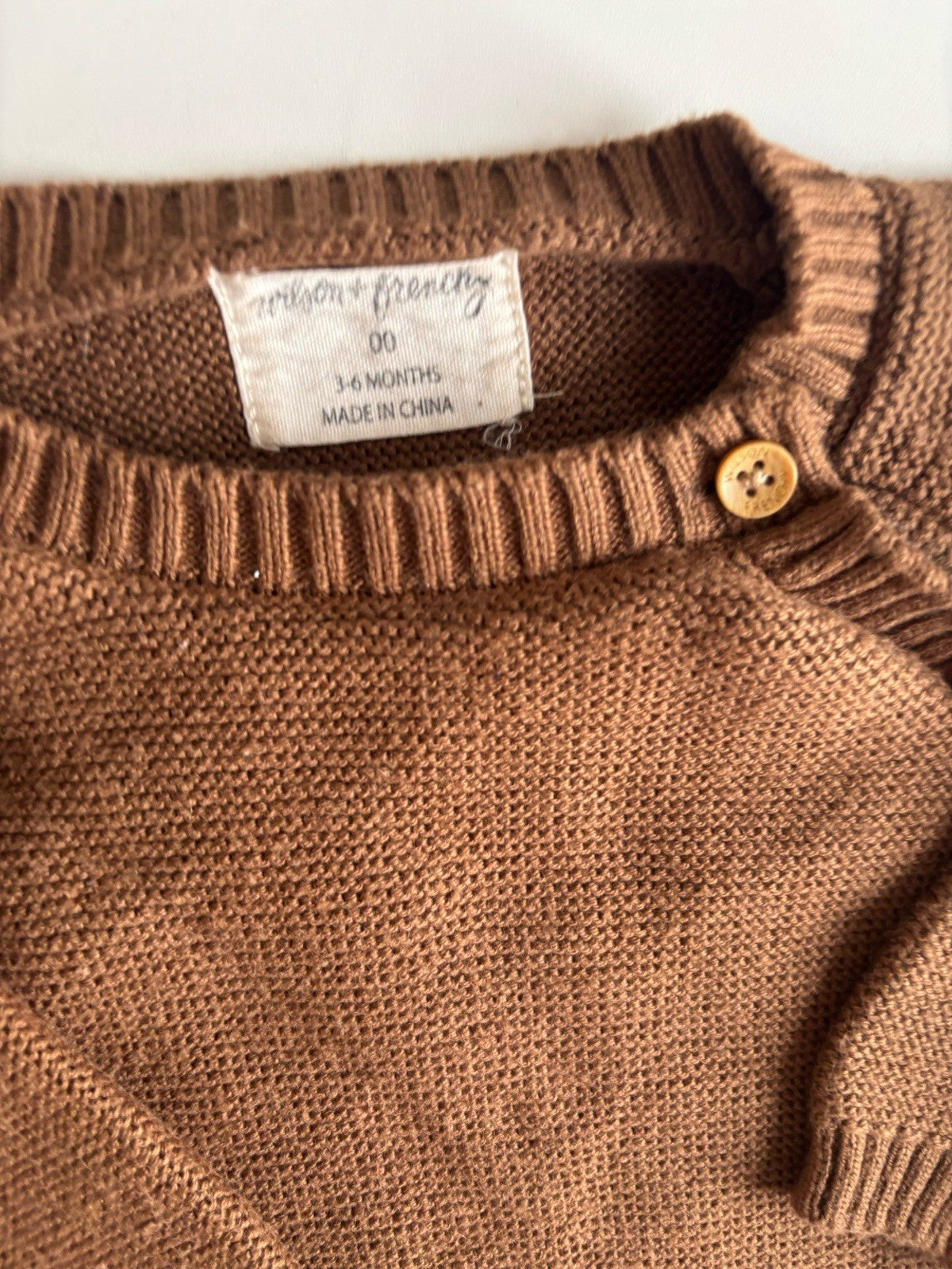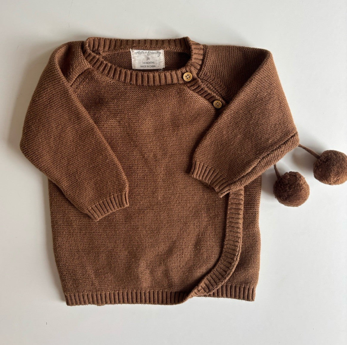 Wilson & Frenchy baby size 3-6 months brown knitted wrap jumper, VGUC