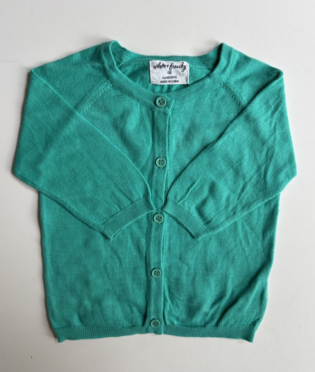 Wilson & Frenchy baby size 3-6 months green knitted cardigan jumper, V