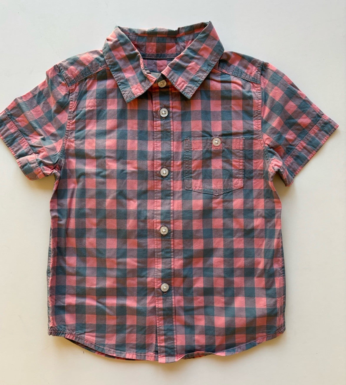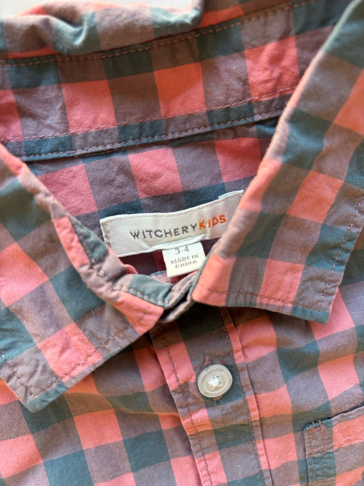 Witchery kids boys toddler size 3-4 blue pink check button up shirt, VGUC