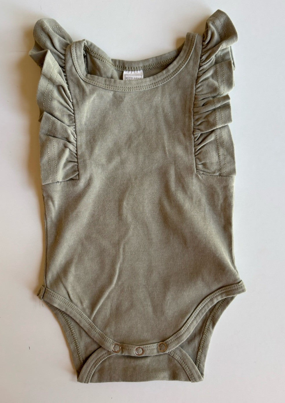 With Love for Kids baby girl size 3-6 months green frill sleeve bodysu