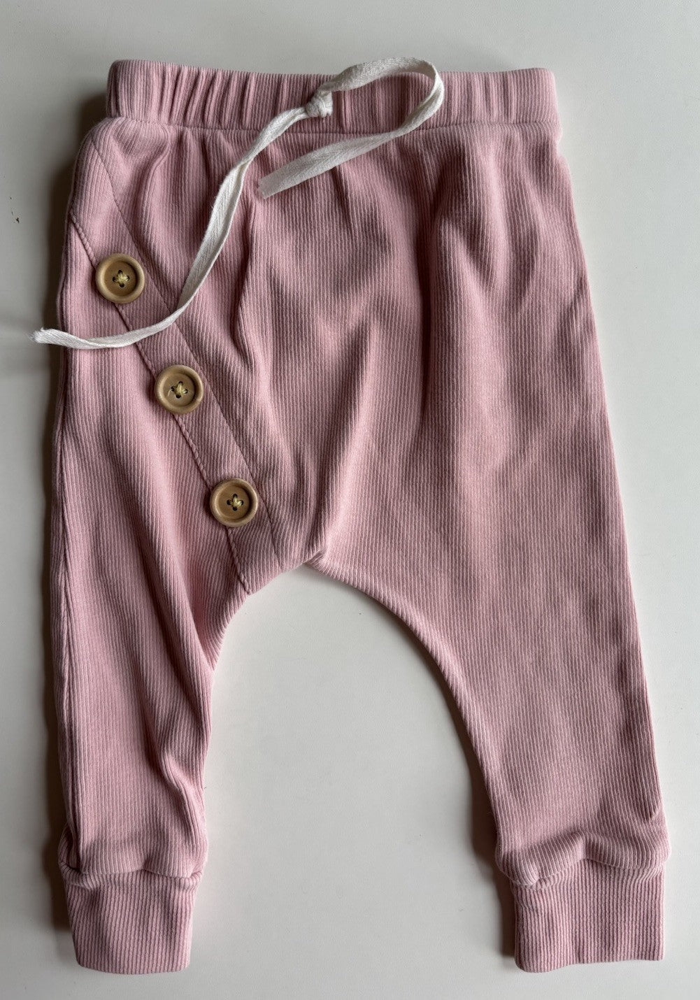 With Love for Kids baby girl size 6-12 months pink ribbed leggings buttons, VGUC
