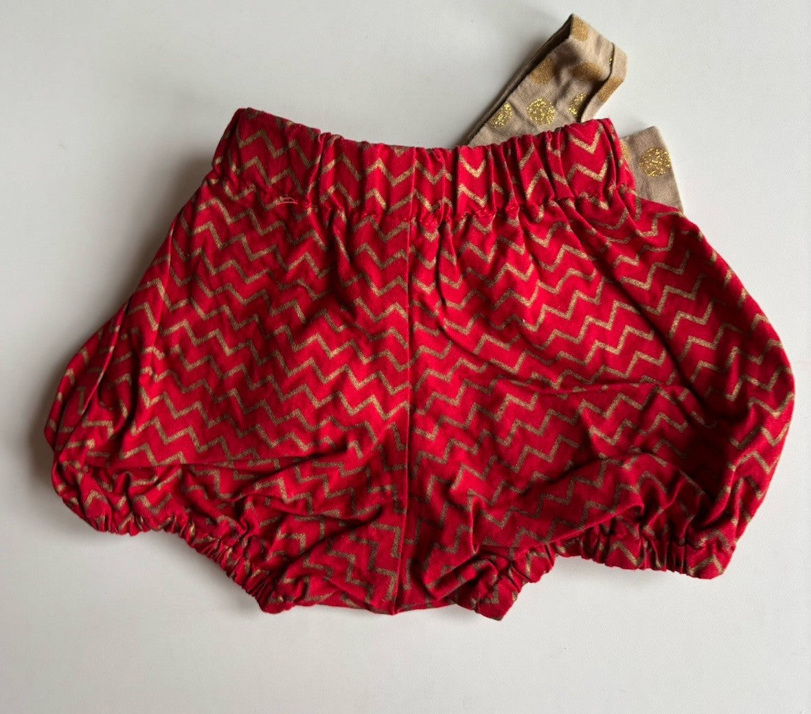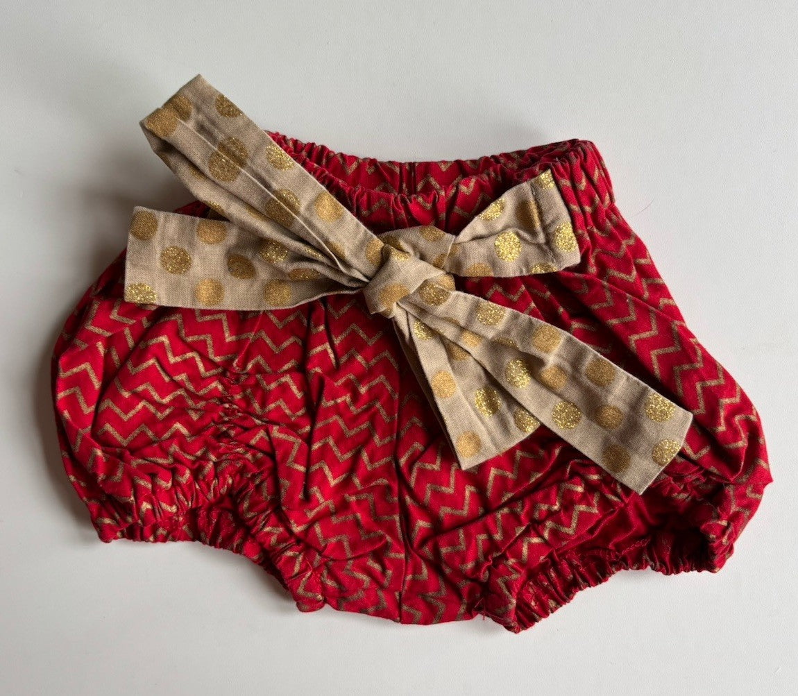 With Love for Kids baby girl size 6-12 months red gold zig zag bow shorts, VGUC