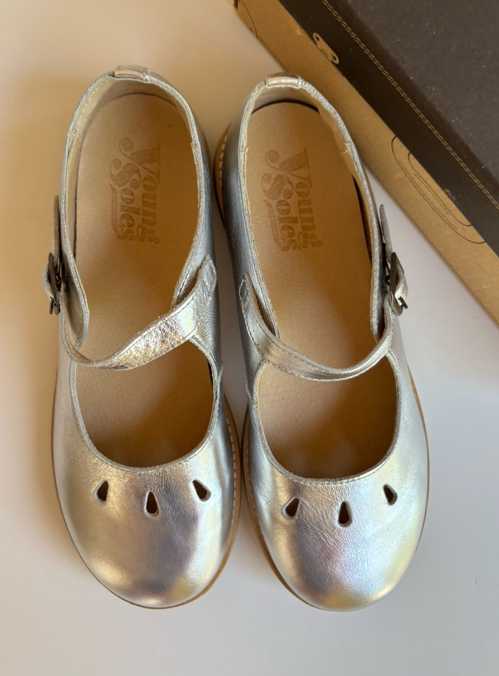 Young Soles kids girls size EUR 35 silver metallic Mary Jane shoes, BN