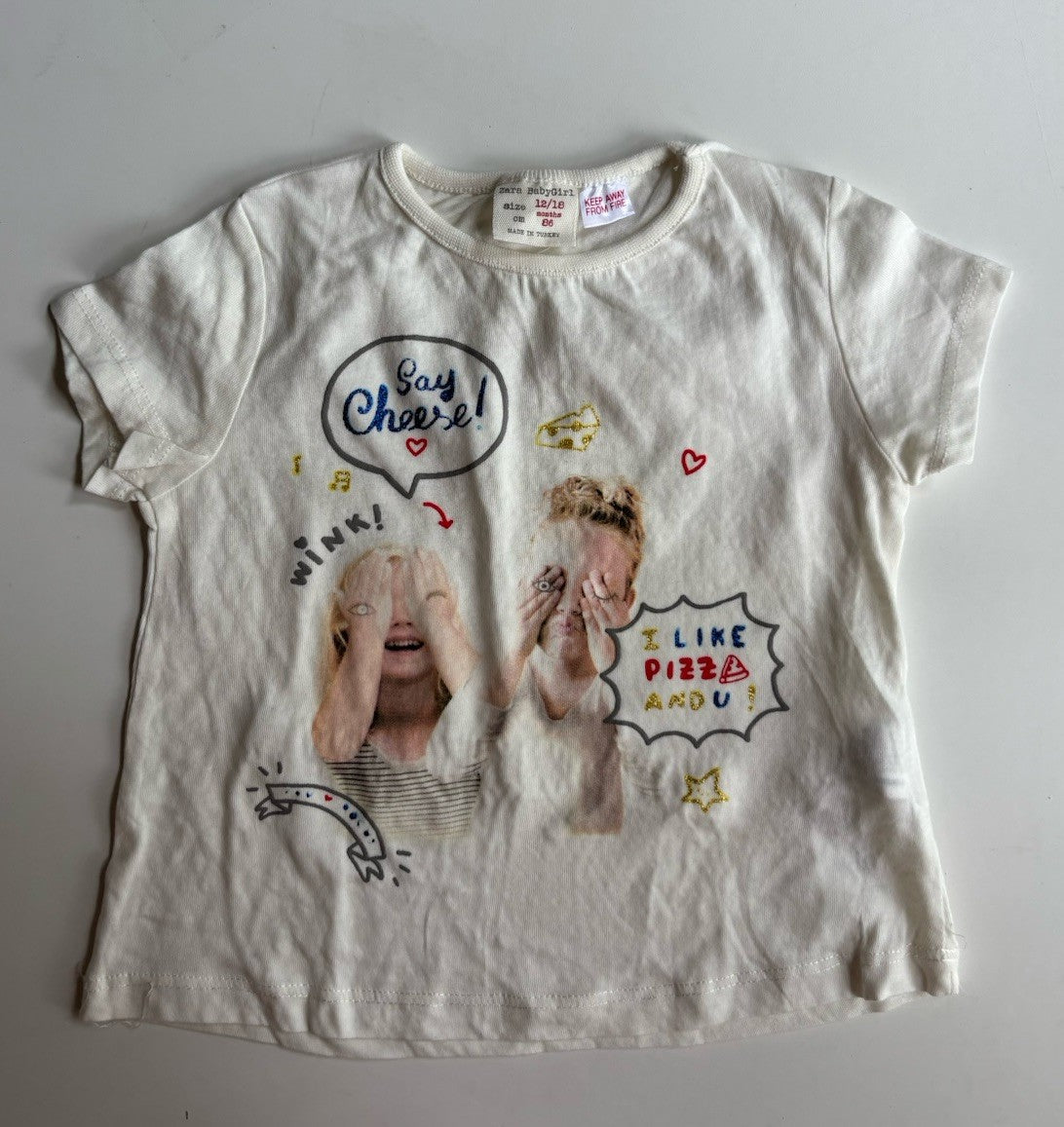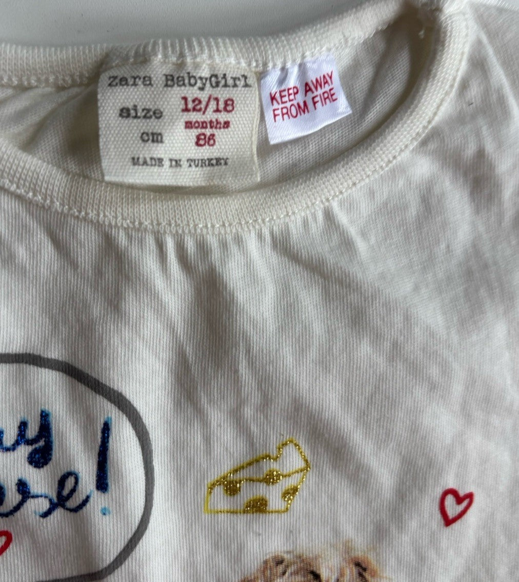 Zara baby girl size 12-18 months white short sleeve t-shirt kids, VGUC