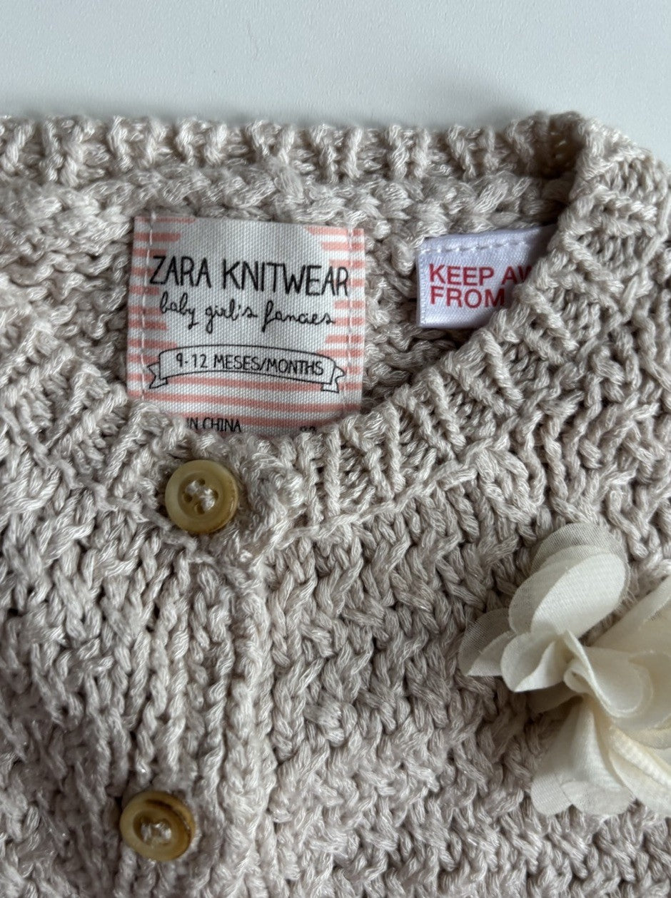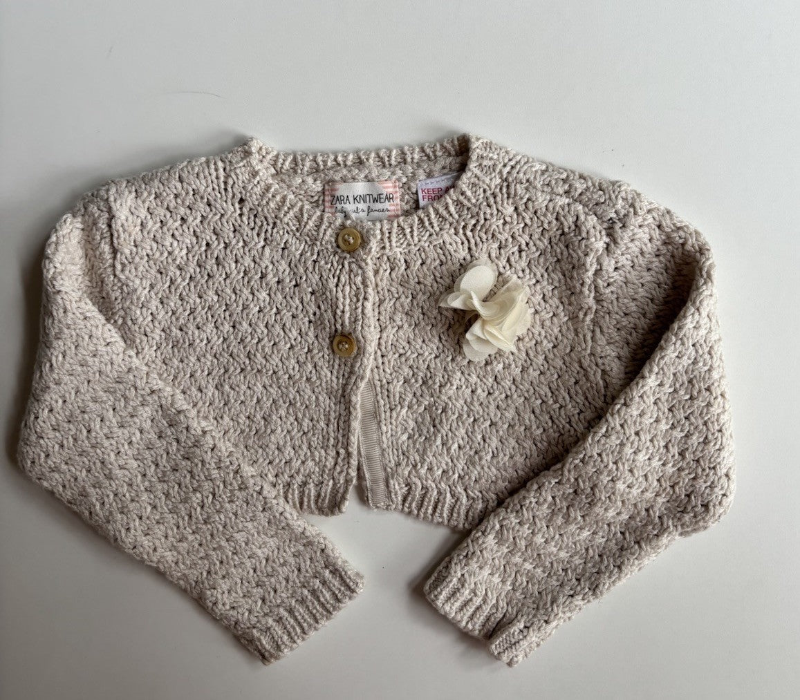 Zara baby girl size 9-12 months beige knitted cropped cardigan, VGUC
