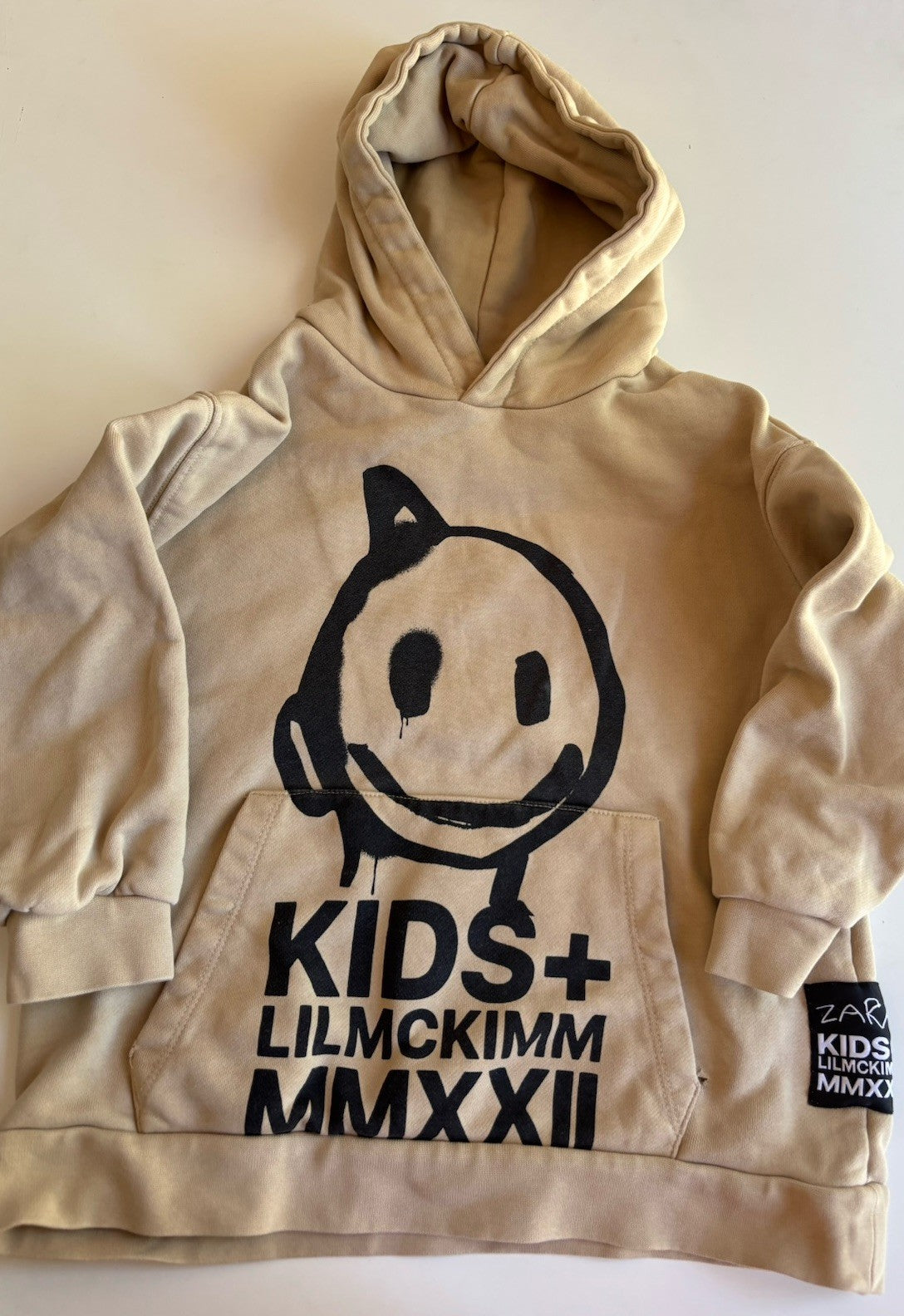 Zara kids boys size XXS (approx. 6 years) light brown hooded jumper, G