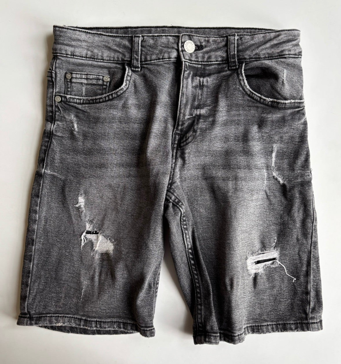 Zara kids size 13-14 grey distressed denim shorts, VGUC