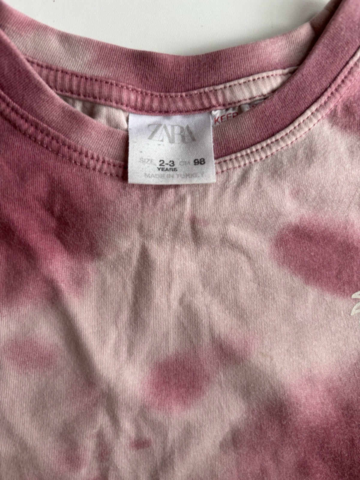 Zara kids size 2-3 years pink tie-dye surf short sleeve t-shirt, VGUC