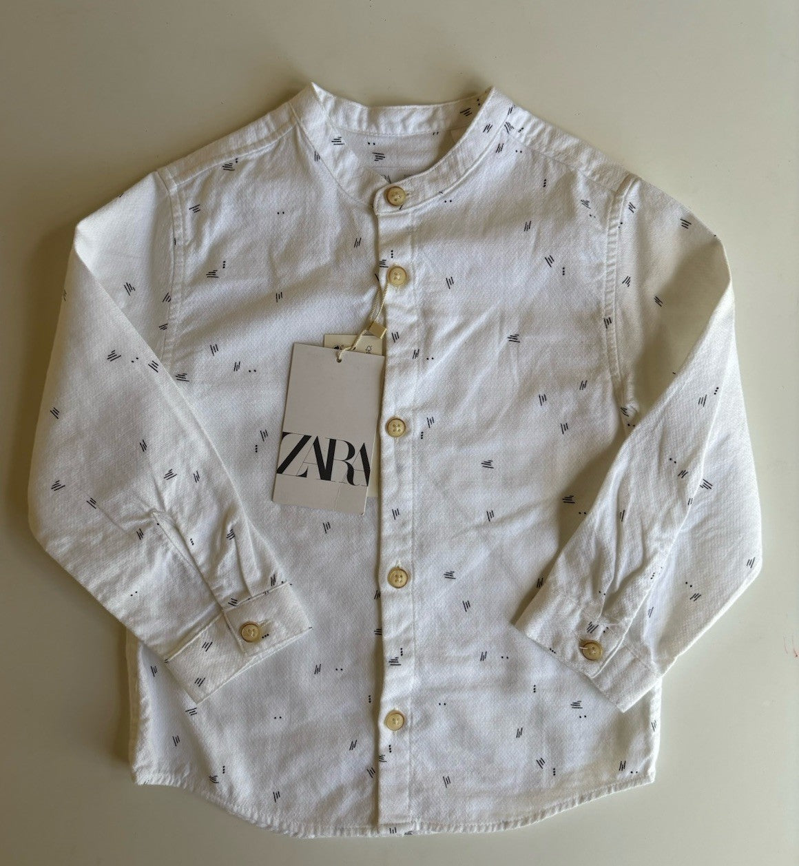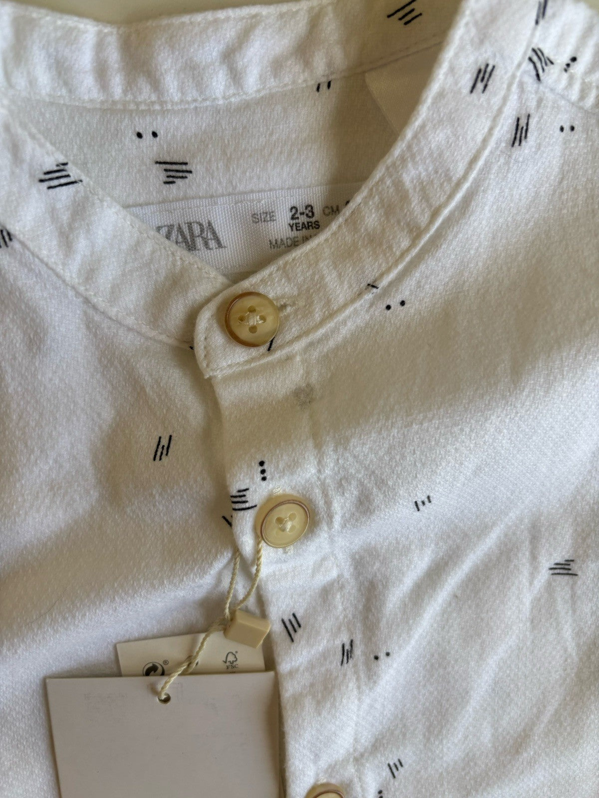 Zara kids toddler size 2-3 years white black patterned button up shirt, BNWT