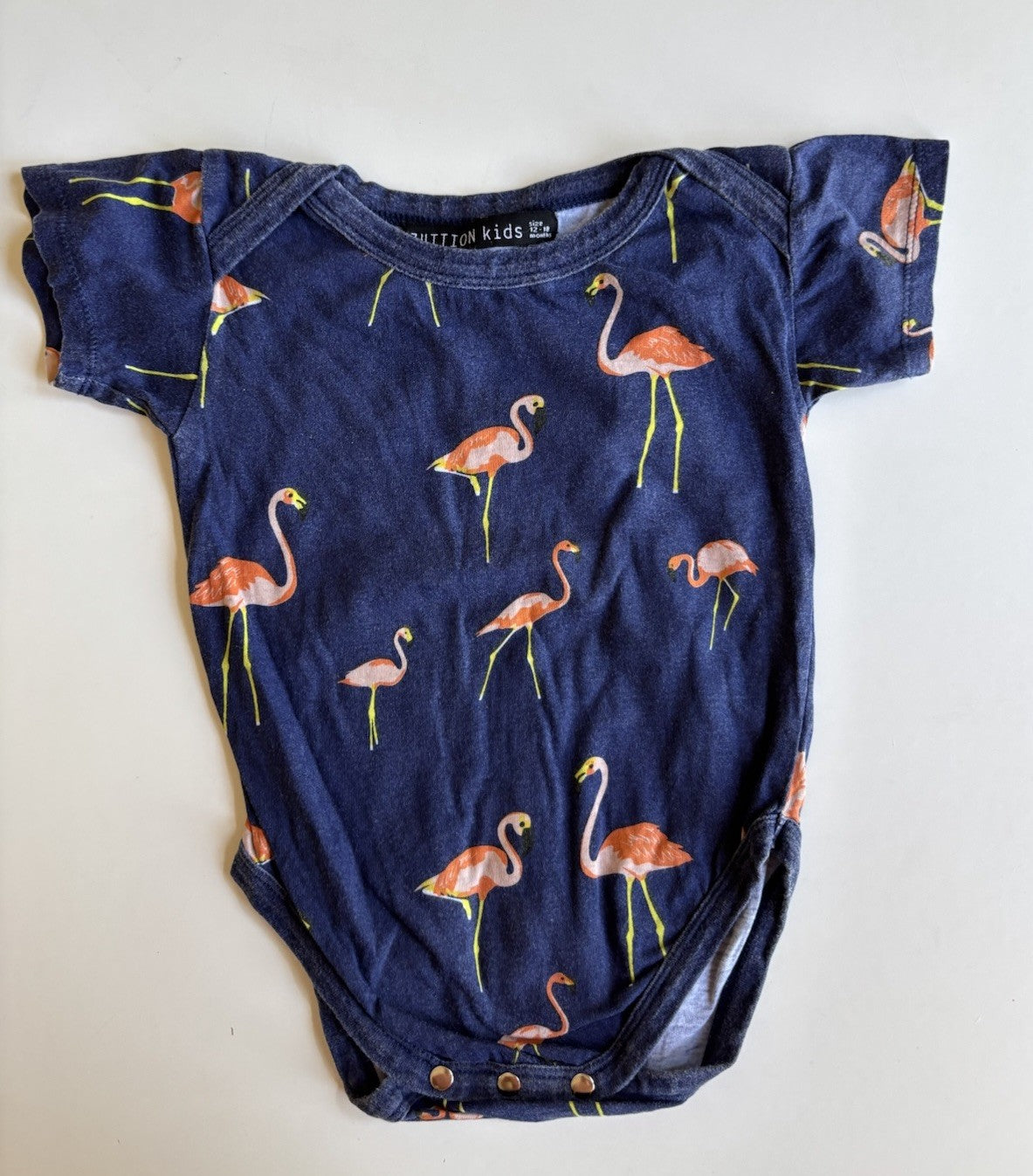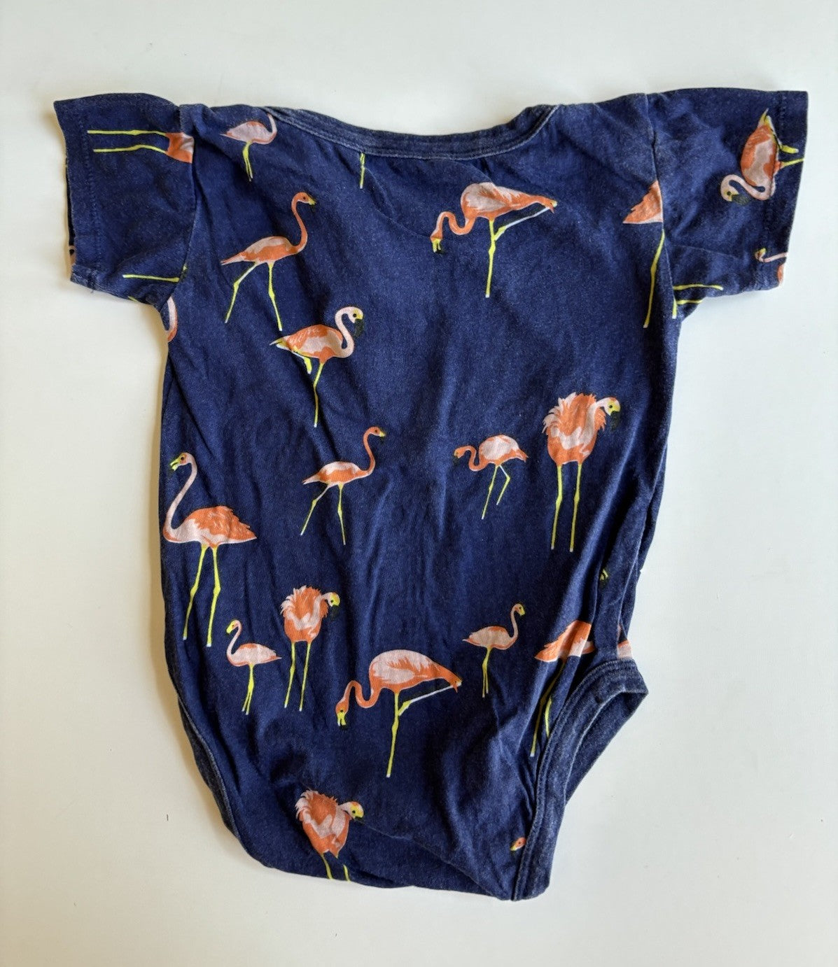 Zuttion Kids baby size 12-18 months navy blue flamingo bodysuit top, VGUC